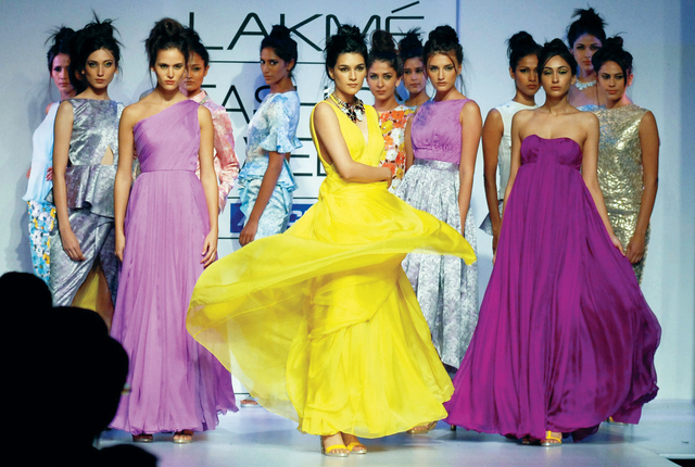 أزياء الشتاء إي بي إيهمجموعة من العارضات يقدمن تشكلية متنوعة من الأزياء من إبداع المصمم الهندي نارشينكاني خلال أسبوع الموضة لشتاء 2012 الذي يقام حاليا في مدينة مومباي، ويشارك فيه نحو 85 مصمما وعارضا يقدمون فيه مجموعاتهم ورؤيتهم لهذا الشتاء بألوان متعددة .