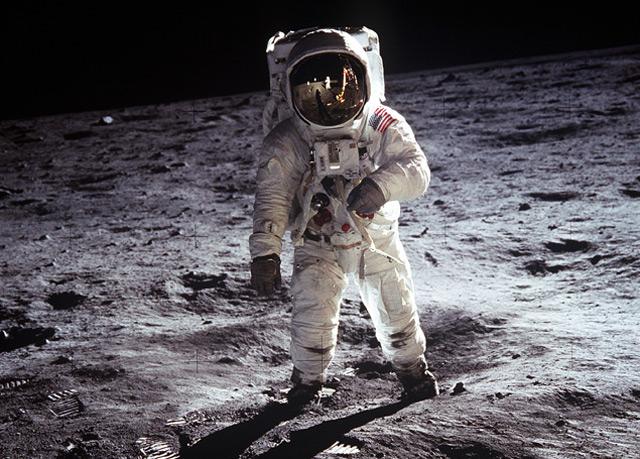وبينما كان ارمسترونج يخطو اولى خطوة له على سطح القمر قال "انها خطوة واحدة صغيرة لرجل وقفزة عملاقة للبشرية."