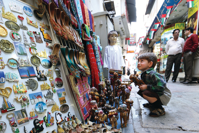 سرقت المشغولات التراثية في أحد المحال داخل سوق الذهب القديم بمنطقة الراس بشارع الخور في دبي، هذا الطفل التركي، فانهمك يتفحص ألعاب الجمال، المصنوعة بشكل حرفي جمع بين مفردات البيئة الصحراوية الغنية، والإبداع في تنميقات الصنعة، التي تعتبر من أهم الصناعات التقليدية، التي تستهوي الزائرين إلى الإمارات، حيث يقتنونها كتذكارات وتحف تحمل روح المكان وتعبر عنه.