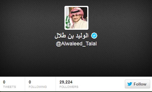 وحظي حساب الأمير الوليد (Alwaleed_Talal ) فور الكشف عنه بمتابعة ما يقارب ال30 ألف مغرد ، ويتوقع أن يصل عدد متابعيه لأكثر من ذلك بكثير خلال اليومين المقبلين .