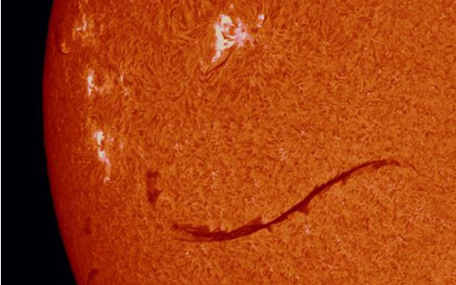 واستخدم الفلكي ديف تايلر "71 عاماً" في مختبره في "ويكومب" ببريطانيا، تليسكوب 5 بوصات، طوره وزوده بمرشحات هيدروجينية، التي تقطع المجال المغناطيسي للشمس.