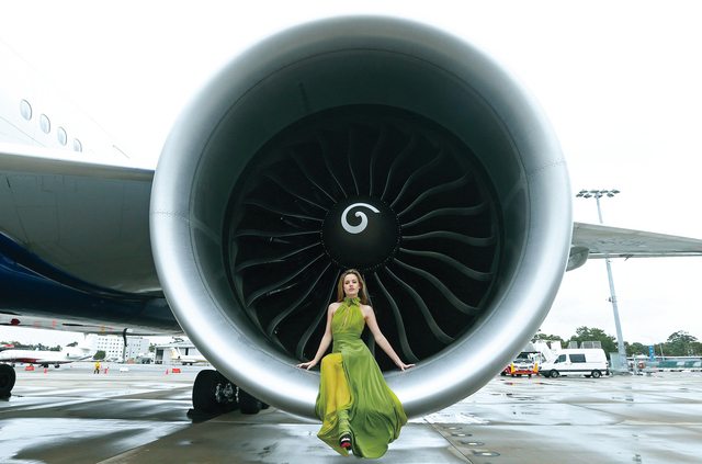 ترويج بالجمال رويترزالعارضة البريطانية جورجيا ماي جاجر في لقطة نادرة أمام أحد محركات طائرة الخطوط البريطانية 777-700 إي آر في مطار سيدني أول من أمس حيث بدأت الشركة البريطانية العمل على خط لندن سيدني باستخدام الطائرة الجديدة إعتباراً من أبريل الجاري.
