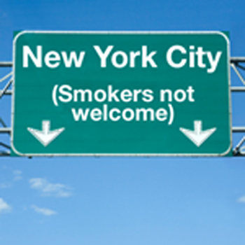 وتعتمد نيويورك قوانين صارمة جداً بشأن التدخين فتمنع التدخين في الحانات والمطاعم والمتنزهات والساحات وحتى على شواطئ المدينة. والرسوم على السجائر فيها هي الأعلى في الولايات المتحدة.