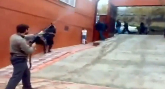 ويظهر في الفيديو القصير الرعب الذي أصاب الطلاب والأهالي الذين حاولوا الاختباء من الرجل المجنون خشية إصابتهم بطلقة طائشة تقضي على حياتهم ليدفعوا ثمن فرصة مجنونة من رجل متهور.