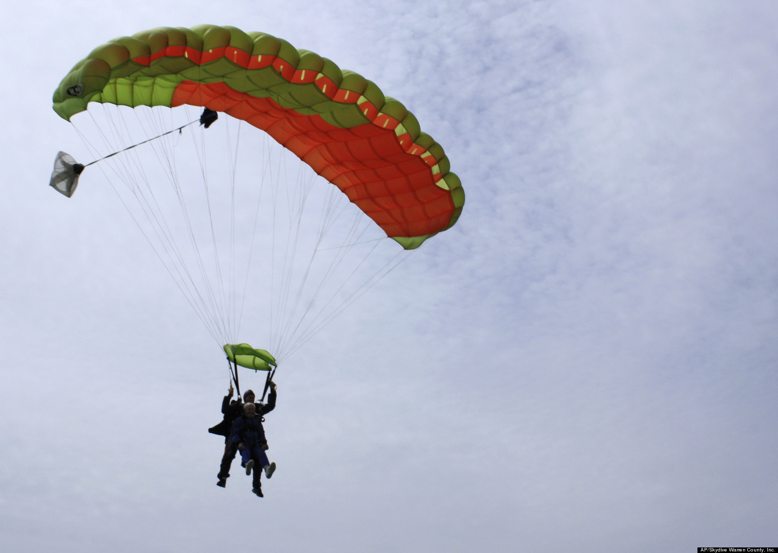 أما هذه المرة فقد قفز من طائرة في أوهايو على ارتفاع 3352 متراً برفقة مدرّب.