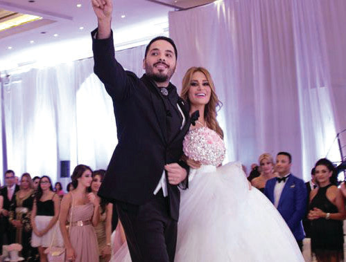 وعلى وقع أنغام أغنيته الخاصة بهذه المناسبة والتي أهداها لعروسه وهي بعنوان "ورديّة" دخل رامي وعروسه الى القاعة التي بدت في أبهى حُلة ، اذ تزيّنت جدرانها بأكثر من مئة ألف وردة بيضاء وورديّة .