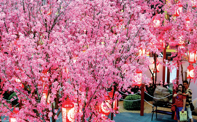 استعداد أ بصينيان يلتقطان الصور أمام أشجار البرقوق الصينية في إحدى حدائق مدينة كوالالمبور الماليزية أول من أمس، في اطار الاستعداد للاحتفال ببداية عام الحصان الذي يصادف غداً وفقا للتقويم الصيني .