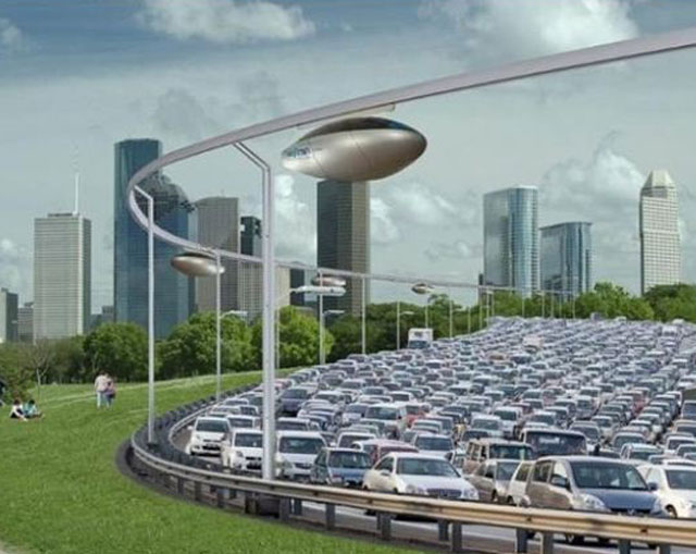 2- سوف تسير المركبات الطائرة فوق الطرقات المروية على قضبان للسير.