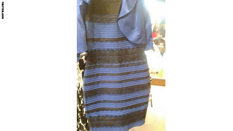 وذكر موقع "سي ان ان"  ان الآراء والتحليلات تنوعت حول اللون الحقيقي للفستان، كما شارك بعض المشاهير متابعيهم رأيهم بلون الفستان، إذ قالت كيم كرداشيان، في تغريدة: "ما هو لون هذا الفستان؟ إنني أرى اللونين الذهبي والأبيض وكانيي يرى اللونين الأزرق والأسود، من منا مصاب بعمى الألوان؟"، وقالت المغنية تايلور سويفت في تغريدة أيضاً: "لا أفهم الجدل الغريب حول هذا الفستان، أظن أن هنالك خدعة ما، أشعر بالحيرة والخوف، ملاحظة: من الواضح أن لونه أزرق وأسود."