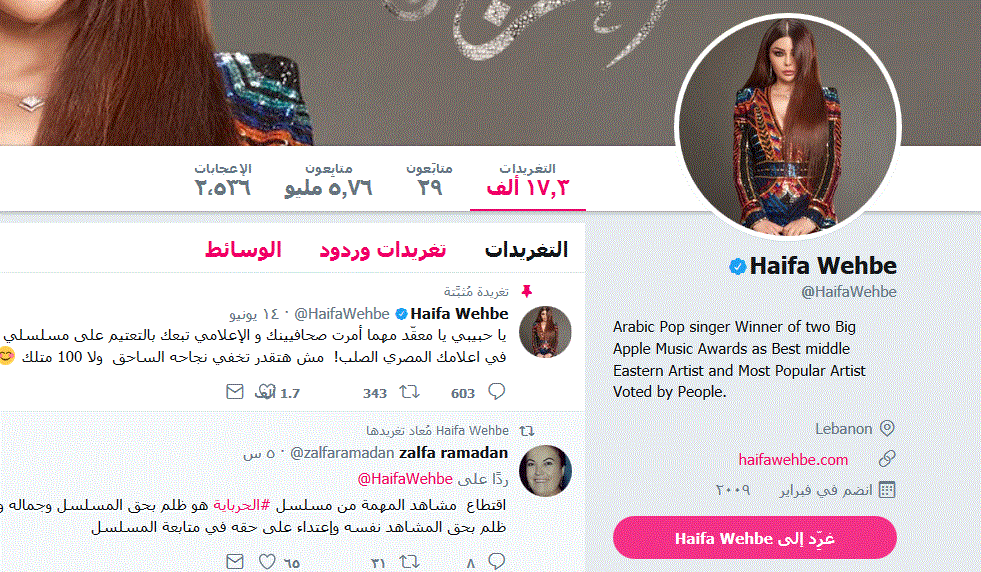 غردت الفنانة هيفاء وهبي على حسابها الرسمي على تويتر تغريدة تثير علامات الاستفهام والحيرة قائلة"يا حبيبي يا معقد، مهما أمرت صحافيينك والإعلامي تبعك بالتعتيم على مسلسلي في إعلامك المصري الصلب! مش هتقدر تخفي نجاحي الساحق ولا 100 متلك". ياترى من المقصود ؟ سؤال يحتاج إلى إجابة.
