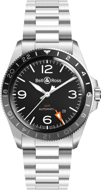 وتبيّن الساعة BR V2-93 GMT 24H الجديدة الوقت في ثلاث مناطق زمنية. وبهذا تُعتبر أداة لا غنى عنها للطيارين، فضلاً عن كونها الرفيق المثالي لعشاق الأسفار والترحال. التصميم العصري للساعة BR V2-93 GMT 24H يتبوأ لها مكاناً في صميم العصر الحديث، فهذه الساعة تبيّن الوقت في ثلاثة أماكن مختلفة حول العالم؛ وهي بالتالي ملائمة تماماً لنمط حياة مسافري القرن الحادي والعشرين.