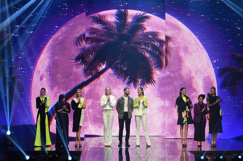 وطلبت ريم عكرا من المشاركين تقديم 2 تصميم وملابس مستوحاة من ألوان «النيون»، قبل أن يحين الوقت مع عرض تصاميم المجموعة الأولى من المتنافسين التي ضمت كلاً من محمد خباجي «موجا» من مصر، وأحمد البلوشي من سلطنة عمان، حيث نال المشترك المصري (2 نجمة ذهبية) لتصاميمه المستوحاة من الخطوط الهندسية، فيما نال المشترك العماني (3 نجمات حمراء).