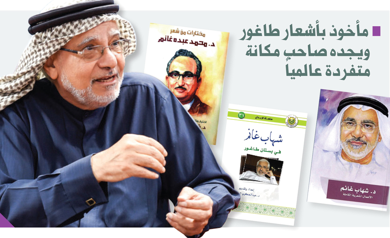 ويقول د. غانم: «استحق طاغور تماماً جائزة نوبل للأدب. في البداية لم أكن حريصاً جداً في التركيز على أعمال طاغور لأنه كان شاعراً محتفى به، أعماله تمت ترجمتها بشكل واسع. لكن بعد قراءتي مؤلفاته، شعرت بأنه من غير الممكن أن يضيع مني طاغور! فأشعاره تتصف بالثراء والروعة إلى درجة أنني أحببت ترجمة أعماله».