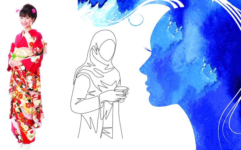 وأخيراً نحط رحالنا في بلاد الشمس المشرقة اليابان، حيث يُحدد «الكيمونو» الوضع الاجتماعي للمرأة، فتختص العزباء بالكيمونو المشرق، الذي يتميز ببهجة الألوان وتتناثر فيه رسومات الزهور على الصدر والأكمام الطويلة المتأرجحة، ويدعى «فوريسود»، بينما يتسم كيمونو المتزوجة والذي يسمى «توميسدو» بألوان أكثر هدوءاً ونعومة ورسمية، وتختفي الزهور المرسومة على الصدر لتتحول إلى أسفل حاشية الكيمونو كونه نوعاً من الحشمة كما يتم تقصير الأكمام لتصبح عملية ومناسبة للمطبخ.