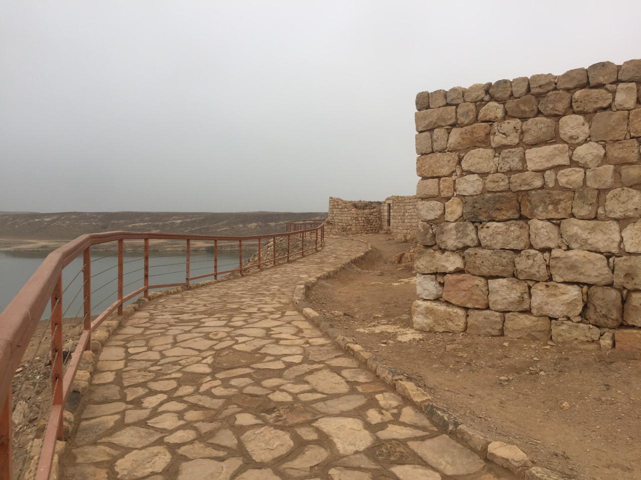 وتشير هندسة الميناء المميزة بممراتها اللا نهائية، إلى أنها كانت ذات طوابق متعددة من مساكن مزدحمة بالسكان ومخازن ومعبد.. وهي محمية بسور ضخم وبوابة ذات كتل حجرية كبيرة وبارزة، كما ورد في الكتابات المسندية العربية الجنوبية التي تم العثور عليها على صحيفة حجرية.