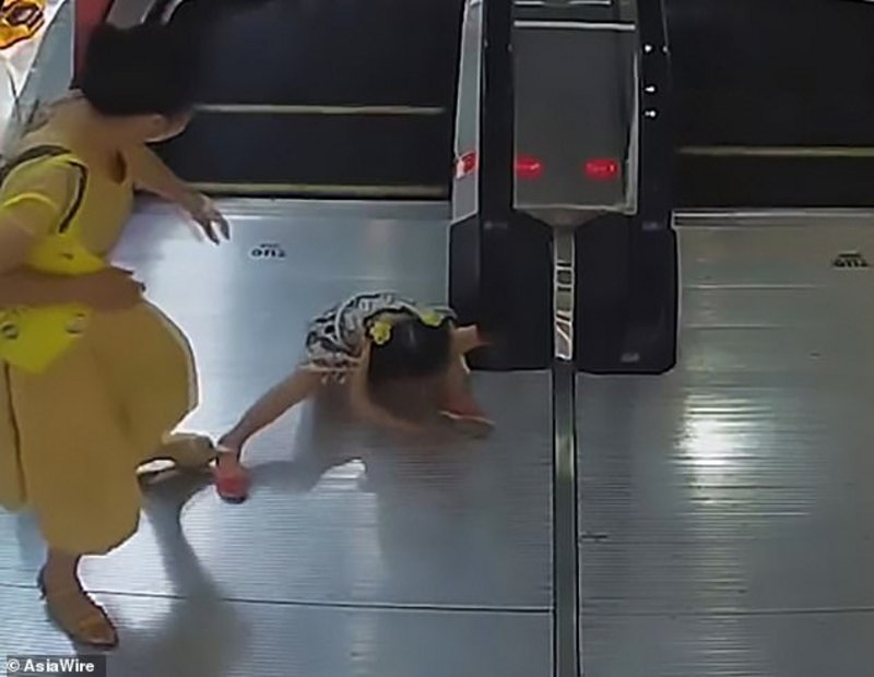 كانت طفلة عمرها 5 سنوات بجوار أمها تصعدان السلم الكهربائي في أحد المراكز التجارية بالصين، يد الطفلة كانت على السلم المتحرك، وعندما وصلتا أعلى السلم، ظلت يد الطفلة مع السلم، دون أن تتنبّه الأم، وهنا وقعت الكارثة.