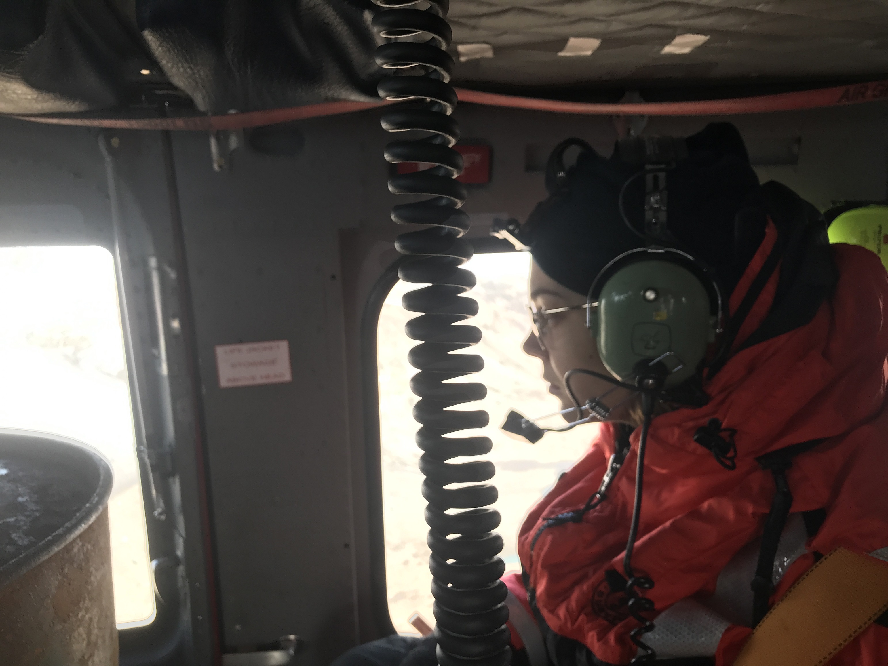 الصور 2: تستعد أورورا باسينسكي فيريس، طالبة الدراسات العليا في جامعة نيويورك، لإطلاق مسبار محمول على طائرة هليكوبتر عند الواجهة الأمامية للشق الجليدي. واكتشف الفريق أن درجة حرارة الماء كانت أعلى بكثير من درجة التجمد من أعلى إلى أسفل، وفوجئ الباحثون بوجود مثل هذه المياه الدافئة قرب الواجهة الأمامية للشق الجليدي.