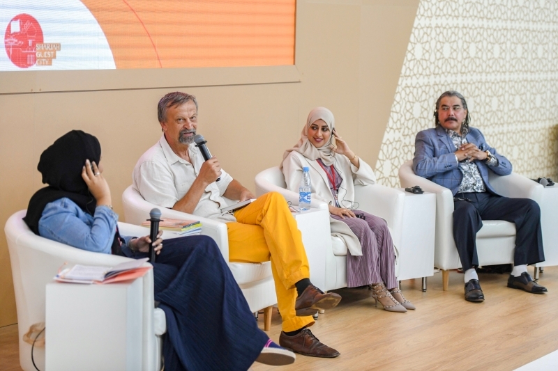 وفي الأثناء، استضاف جناح الشارقة في المعرض جلسة حوارية بحثت في جذور تشكل الحكايات التي تتناقلها الشعوب، ومصادر إلهام الكاتب في عصر يتسم بتسارع المتغيرات وكثرة الانشغالات.
