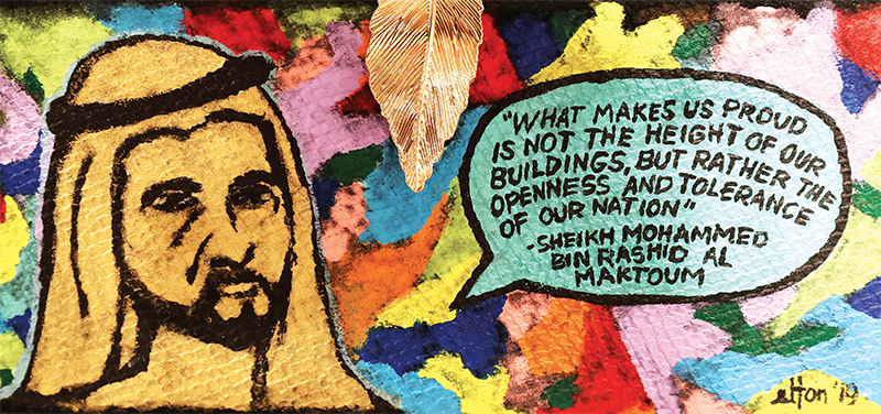 ويستمر المعرض الذي تنظمه «2 إكس إل للأثاث والديكور المنزلي»، حتى 14 سبتمبر الجاري، ويجتمع خلاله أكثر من 100 من الفنانين المخضرمين والناشئين، المحليين والعالميين من مختلف الجنسيات، ليوجهوا التحية والتقدير إلى روح السلام والمساواة التي تتميز بها الإمارات. ويتضمن المعرض أكثر من 250 قطعة فنية متميزة، إضافة إلى مجموعة من العملات الثمينة التي يمتلكها رجل الأعمال رام كومار تولاني، والتي تتضمن عملات نادرة.