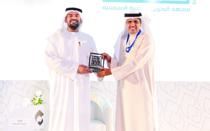 وفي ختام الجلسة قام علي بن محمد الرميحي وزير شؤون الإعلام ورئيس أمناء معهد التنمية السياسة بتكريم الجسمي بدرع تذكاري عن مشاركته الفعالة والهادفة بتحقيق أهداف الملتقى.
