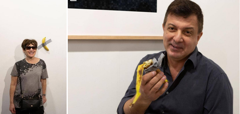 التحفة الفنية "موزة على الحائط"، التي كانت بمثابة "رمز للتجارة العالمية"، كانت معروضة في معرض "آرت بازل" في ميامي بيتش بولاية فلوريد، عندما أكلها الفنان الاستعراضي ديفيد داتونا أمس السبت.