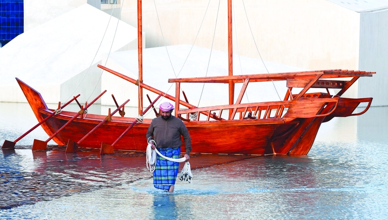 في ركن البيئة البحرية تجسد السفينة الطافية على سطح المياه، السفن القديمة التي كانت تستخدم في الصيد، بينما يقوم أحد الصيادين بتجربة اصطياد الأسماك بواسطة الشباك، في محاكاة لما يحدث عادة في عرض البحر، وفي مكان ليس بالبعيد منه يجلس عدد من الحرفيين الذي يقومون بصناعة «القرقور»، وهو قفص مصنوع من سعف النخيل أو الحطب، أو من الأسلاك المعدنية المرنة، ويتراوح طوله ما بين نصف المتر والمترين، ويساعد على منع الأسماك من الهروب، يجاورهم حرفيون آخرون يقومون بصناعة شباك الصيد، بدقة ومهارة، وهو ما يُمَكن الأجيال الجديدة من التعرف عن مهن مارسها الآباء والأجداد، التي يرزقون منها.