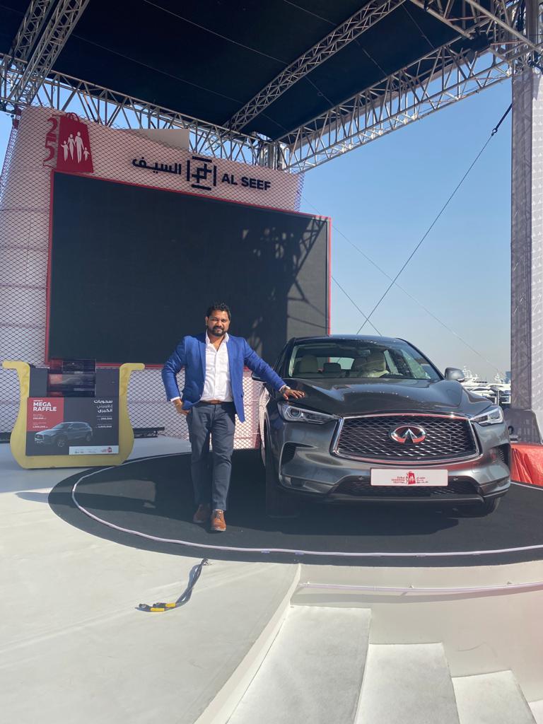 وكان الحظ السعيد بانتظار أبيلاش بعد أن اشترى بطاقة للدخول في سحوبات إنفينيتي الكبرى من إحدى محطات "اينوك"، حيث فاز بالجائزة اليومية التي تشمل سيارة إنفينيتي QX50 ومبلغ 200،000 درهم. أبيلاش هو والد لطفلين ويعمل في أحد متاجر المفروشات في دبي.