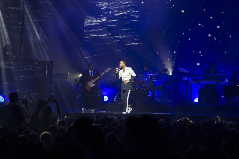 أغنيات كثيرة قدمها ليجند خلال الحفل، وفي صدارتها أغنيته «لوف مي ناو» والتي تمثل واحدة من أبرز أيقونات ليجند التي لقيت نجاحاً لافتاً، وكذلك «أي غود نايت» التي يؤكد فيها أن «كل شيء سيكون على ما يرام»، ليرفع من منسوب الرومانسية في أغنيته (Ordinary People)، وهو ما تجدد في أغنيته (All of Me) التي يعلو فيها وتر الغيتار التي تشابكت مع أوتار البيانو، فيما زينها ليجند بجمالية صوته.