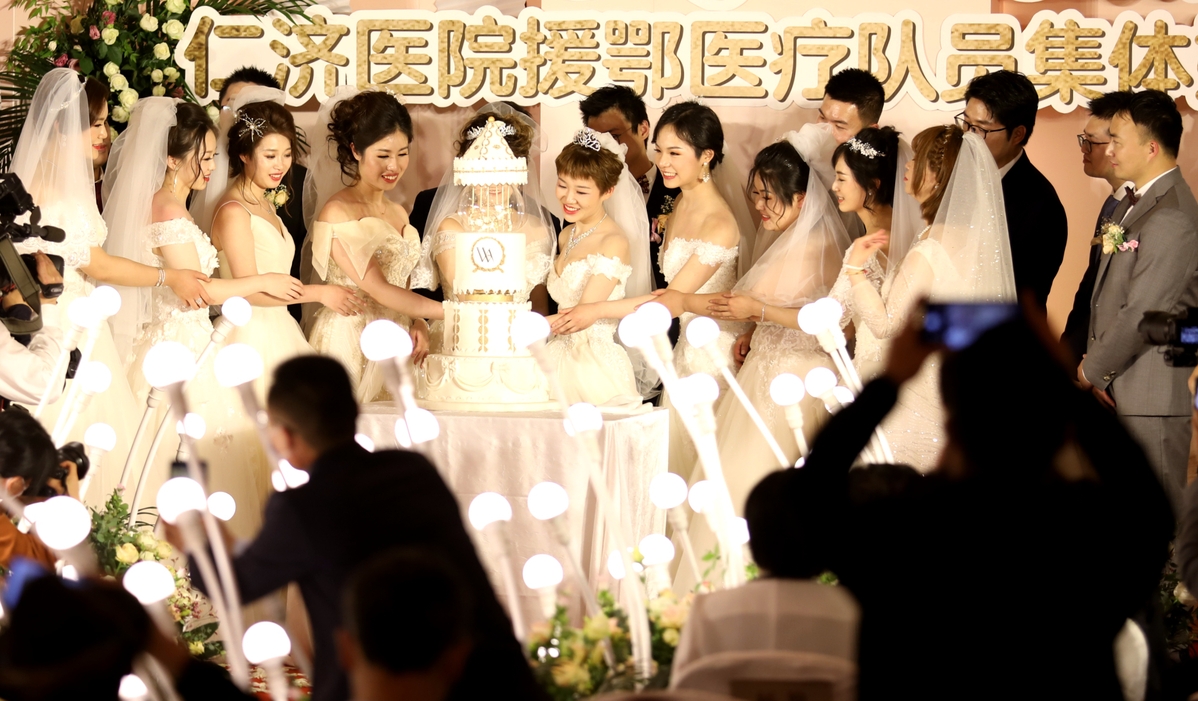 وإضافة إلى "تشن" و "وو" ، اختار تسعة أزواج آخرين، من مستشفى رينجي، تأجيل احتفالات زفافهم من أجل الانضمام إلى معركة كورونا ورعاية المرضى.