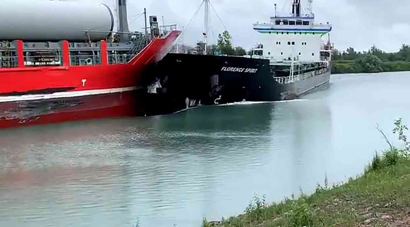تداول رواد التواصل الاجتماعي فيديو لحادث غريب يظهر تصادماً بين سفينتين، كانتا تمران عبر ممر مائي كندي.