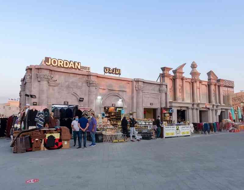 في كل حي من الأحياء العربية والأجنبية المشاركة في المهرجان، معروضات خاصة تميزه عن غيره من الأحياء الأخرى، ففي الحي الأردني تعرض الفاكهة المجففة بنكهاتها المختلفة، التي تبرز محاصيل الأردن مثل التين الجبلي والفاكهة المجففة والمكسرات، وهو ما يعرضه يوسف محيي الدين الذي حرص على المشاركة في المهرجان.