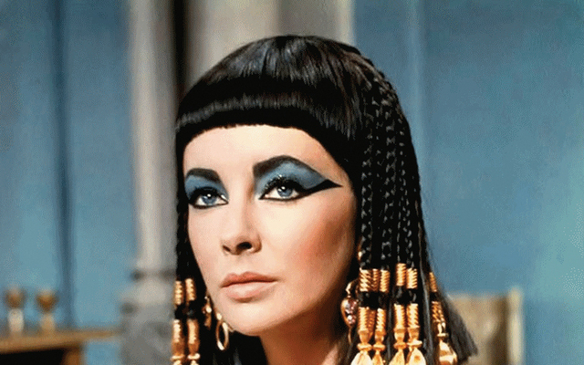 تعد كليوباترا أشهر الملكات التي حكمت مصر، وقد تم تجسيد مأساتها في أكثر من فيلم وكثيرات هن الممثلات اللواتي أدين شخصيتها مثل صوفيا لورين وكاثرين هيبورن ومونيكا بيلوتشي وهيلين ميرن، لكن تبقى الممثلة الأميركية إليزابيث تايلور أشهر من قدمت هذه الشخصية التاريخية التي اشتهرت بجمالها، ففي عام 1963 تم إنتاج فيلم (كيلوباترا) الذي لعبت فيه تايلور دور البطولة إلى جانب الممثل ريتشارد بيرتون الذي أصبح زوجها فيما بعد، وقد بدت تايلور بغاية الجمال في هذا الدور بمكياجها القوي وكحل العين العريض والأزياء الأسطورية، وارتبط اسم إليزابيث تايلور منذ ذلك الحين بصورة كليوباترا الملكة الفرعونية الجميلة، وتدور أحداث الفيلم في عهد البطالمة، حيث تحاول كليوباترا الاحتفاظ بالعرش عن طريق الزواج من مارك أنتوني ولكن تقوم الحرب بينه وبين أوكتافيوس الذي ينتصر وتنهي كيلوباترا حياتها بالانتحار، وقد نال الفيلم أربع جوائز أوسكار، كما قدمه المخرج إبراهيم لاما بإنتاج مصري عام 1943 وشارك في البطولة أمينة رزق ومحمود المليجي وأنور وجدي.
