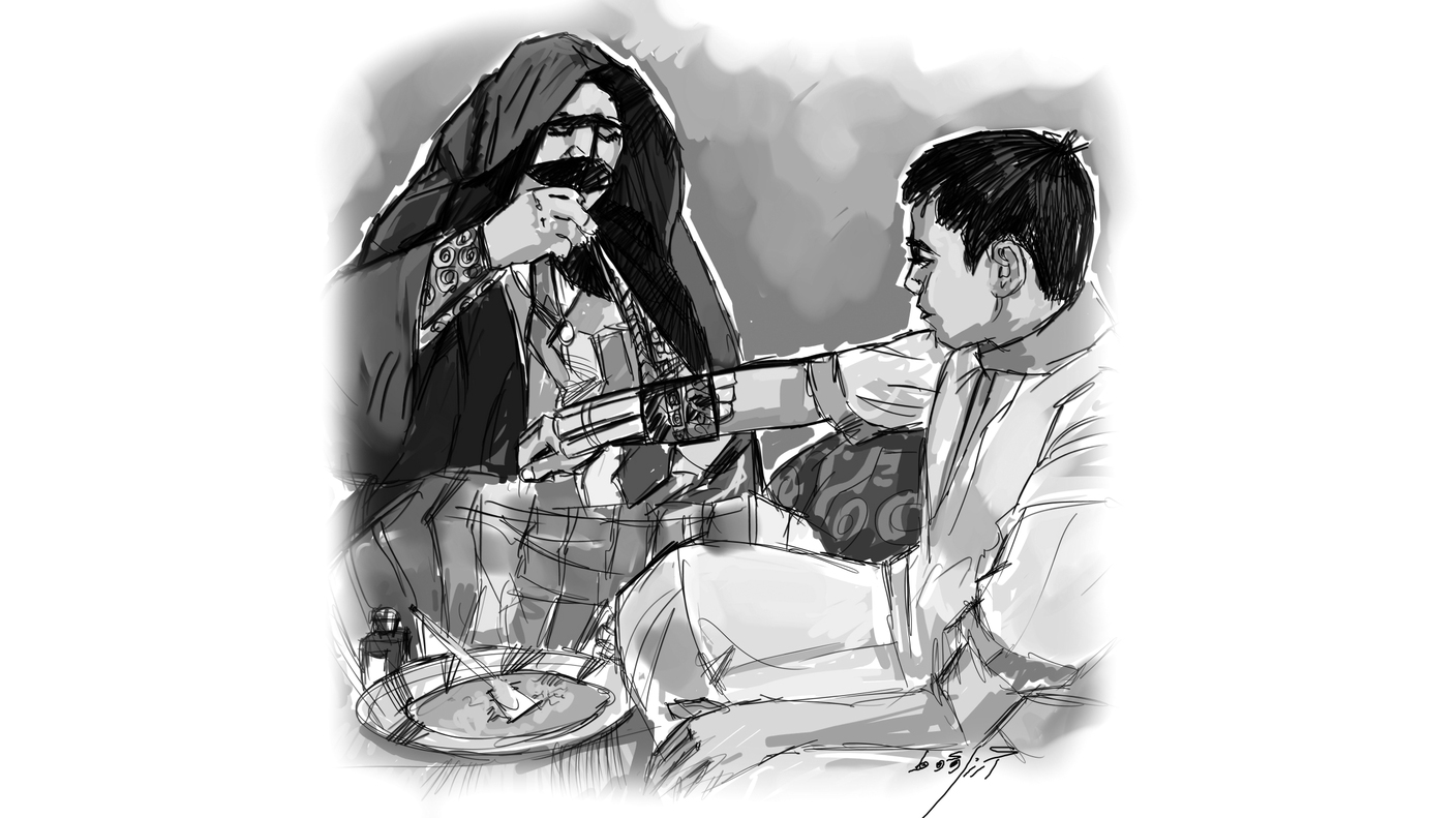 ولمرض عرق الرضاخ (السرة)، الذي يظهر على شكل آلام شديدة في الجانب الأيسر وفي منطقة السرة من البطن، بحيث يمتنع المصاب عن الأكل، ويصاب بالغثيان والتقيؤ، كان يعالج بالكيّ بمخباطين فوق السرة، وقد يعالج بالتدليك أو النوم على فنجان فارغ، ويدلك بطن المريض بالرماد والملح، ويعالج أيضاً بشرب الزنجبيل أو الزعتر. ويستخدم أيضاً نبات «الخيل» ذو اللون البني صلب الملمس لعلاج آلام البطن، وأيضا يستخدم كوقاية عن الأمراض البسيطة مثل الزكام. أما «الحلول» فهو يستخدم في تنظيف البطن وتخفيف آلام الإمساك.