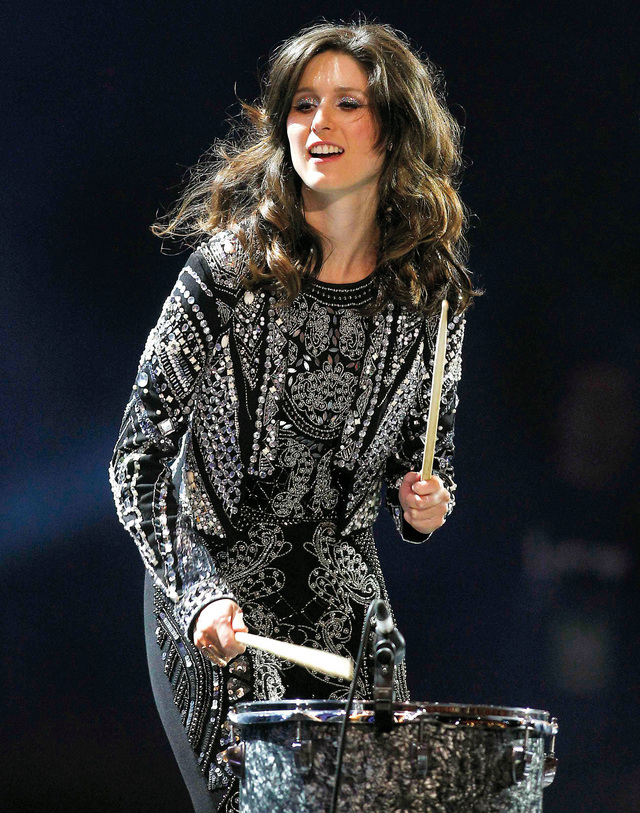 المغنية التشيلية فرانسيسكا فالنزويلا تتحين الفرصة لتقوم باظهار مهاراتها الموسيقية بالضرب على الايقاع بأسلوب رشيق وممتع بشكل جعل الجمهور يتفاعل بحماس تجاوبا مع الايقاع خلال مهرجان الأغنية الدولي 54 في مدينة فينا ديل التي تبعد حوالي 121 كيلومترا (75 ميلا) شمال غرب العاصمة.