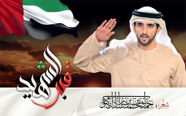 يختم سمو الشيخ حمدان بن محمد بن راشد آل مكتوم، ولي عهد دبي القصيدة، بروح متدفقة ومشاعر قوية وبوح مُنساب، مفاخراً بإنجازات الشهداء البواسل، تسطر أمجاد الوطن والأمة، وتصوغ التاريخ ملحمة نصر وإخاء عربي وحق إنساني، ترخص فيه الدماء، وتوهب فيه الأنفس الغالية والأرواح الزكية بطيب خاطر، وهي تتوق إلى نيل شرف الشهادة، وبلوغ أشرف مقام وأعز وأنبل تضحية: