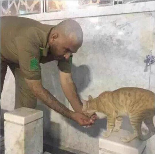 قال صاحب أحد المطاعم في محافظة جدة، إنه سيقدم وجبة غذائية يومياً مجاناً لمدة عام كامل لأحد رجال الأمن الذي سقى قطة ظمآنة من يديه، في صورة تناقلها مرتادو مواقع التواصل الاجتماعي.