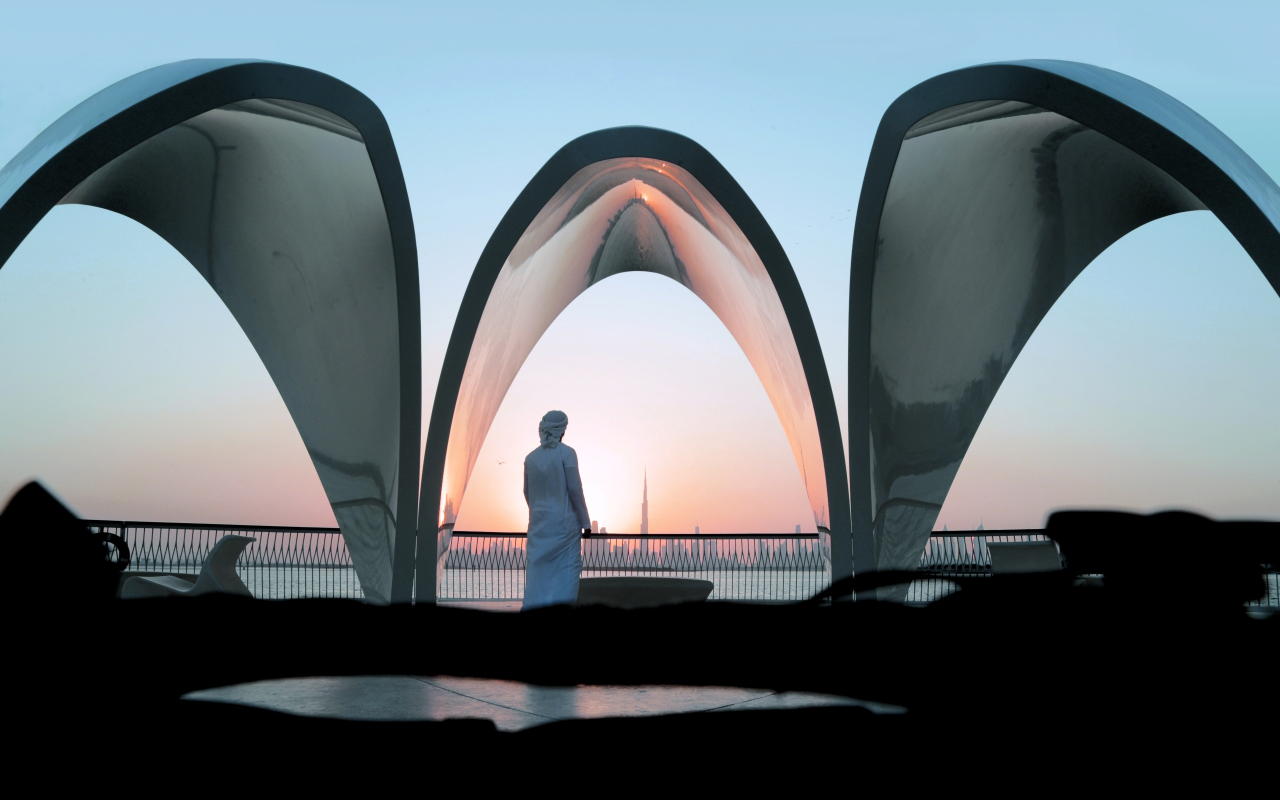 أفق دبي تصوير عبدالله المطروشييعد مرسى خور دبي أحد الوجهات التي تواكب رؤية دبي في المزج بين الإبداع والابتكار، حيث تتألق التصميمات الإبداعية مع المناظر الخلابة لمياه خور دبي، في الصورة أفق دبي الذي يُزيِّنه «برج خليفة»، أعلى مبنى شيده الإنسان على وجه الأرض.