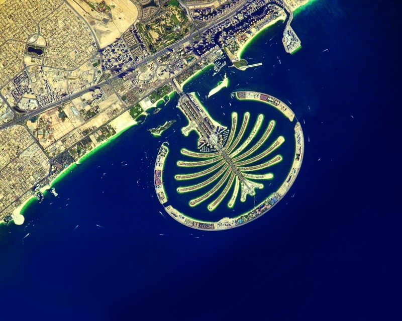 صورة من الفضاء لجزيرة النخلة في دبي، نشرها على «تويتر»، رائد الفضاء والطيار الفرنسي توماس بيسكيت، التابع لوكالة الفضاء الأوروبية، إذ أرفقها بتغريدة قائلا: «جزيرة النخلة في دبي، بتقريب الصورة تظهر تفاصيل رائعة، وهناك برج العرب على يسار الصورة.