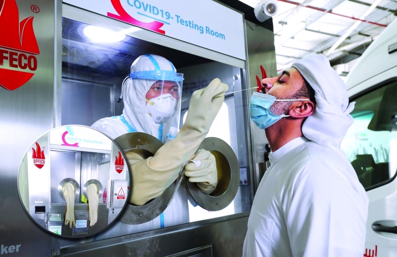 غرفة : «كابينة ثابتة» لإجراء فحص كورونا، من ابتكار «إسعاف دبي»، كُشف عنها، أخيراً، ستوفر فحص العمال بدلاً من خروجهم لطلب الرعاية الصحية في حال الاشتباه بالإصابة بالفيروس، وتتسم بأنها تعزل الفاحص تماماً عن الأشخاص المفحوصين، موفرة تعزيز الإجراءات الوقائية والاحترازية. ومن المحتمل أن يبدأ استخدام هذا الجهاز خلال اليومين المقبلين.