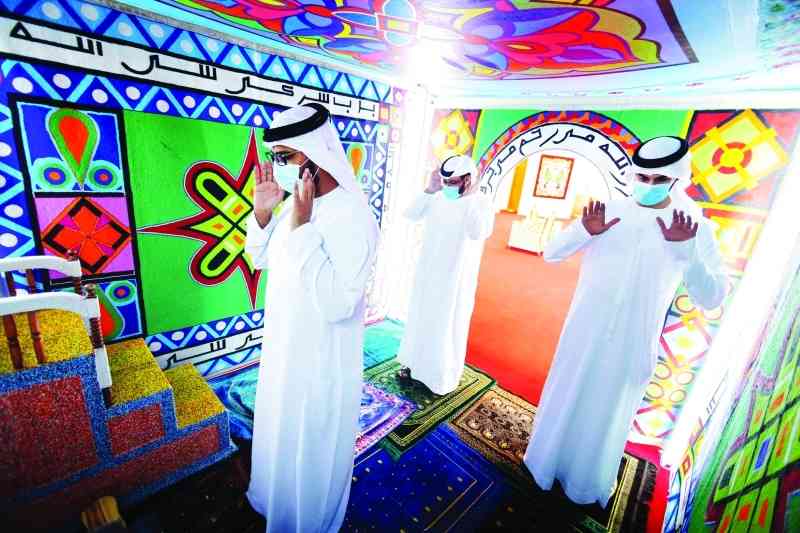 نقوش روحية تصوير: أحمد بدوانمصلى في «معرض القصر الأحمر» للفنان الأمير سلطان بن فهد بن ناصر آل سعود، في المجمع الثقافي بأبوظبي، عمل تركيبي لمسجد بمقياس حقيقي وبجدران مزخرفة من الداخل بنقوش متداخلة، بالإضافة إلى الزخارف الإسلامية المطرزة بالخرز.