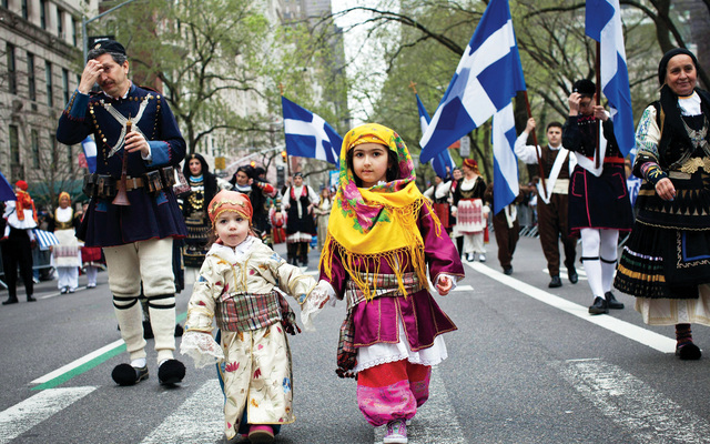 اليونان.. احتفال الاستقلال «أ ف ب» أطفال يرتدون الملابس اليونانية التقليدية ويشاركون في الاحتفال السنوي ليوم الاستقلال الوطني على الطريق الخامس. يمر الاستعراض الاحتفالي بشارعي 64 و79 أيفا.