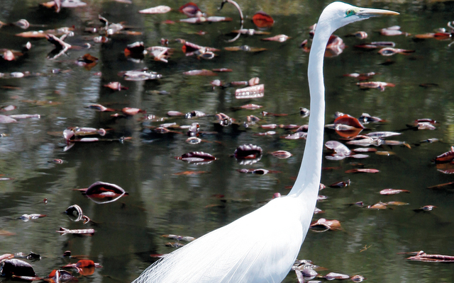 طوكيو.. بلشون وسلحفاته (أ بطائر بلشون أبيض وسلحفاته في حديقة ايواتسوكي جوشي بالقرب من طوكيو في اليابان، يعكسان لوحة فنية طبيعية )