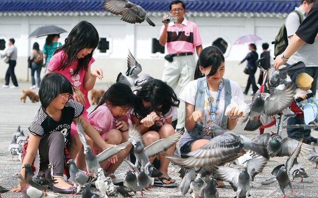 تايبيه..بهجة الحمام «أ ب»فتيات صغيرات يطعمن مجموعة من طيور الحمام في يوم مشمس أمام قاعة تشيانغ كاي شيك التذكارية في إحدى ساحات العاصمة التايوانية تايبيه .