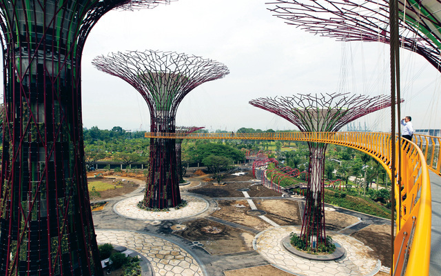 صوت وضوء أي بي إيهحدثان رعاهما بنك الصرافة الخارجية الصيني، للصوت والضوء في حديقة الأشجار السوبر، والممر الضوئي الذي يسمى سكاواي. والصورة توضح الممر الضوئي وبه أشجار سوبر منحوتة في سنغافورة .