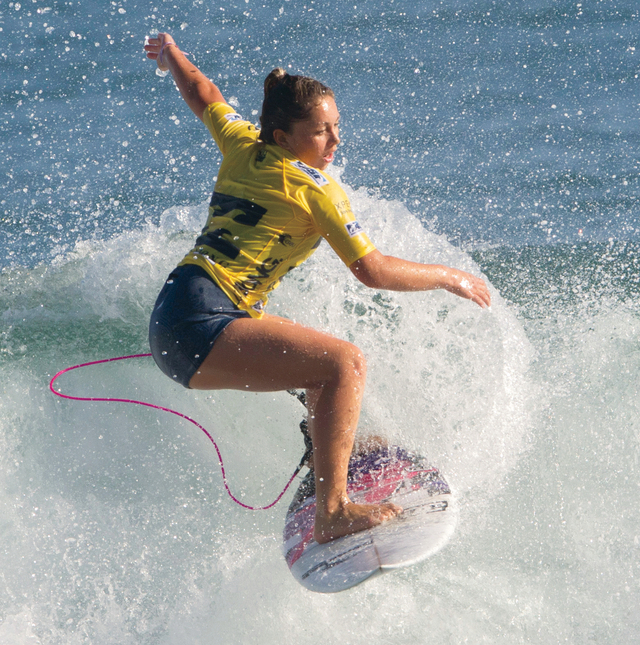 تزلج (أ ب)النيوزيلاندية سارة ماسون خلال سباقها مع أمواج البحر في الجولة الأولى لمنافسات التزلج على المياه في ريو دي جانيرو بالبرازيل.