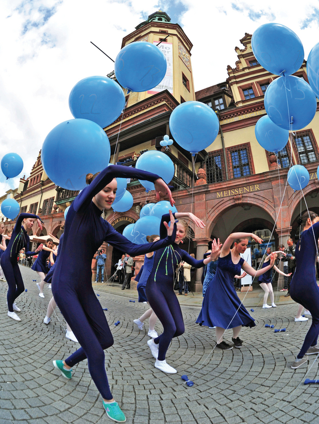 ليبزيغ.. رقصة البالونات أي بي أيهراقصات من مدرسة جوهان سباستيان باخ للموسيقى يرقصن مع 23 بالوناً في المهرجان الافتتاحي للرقص في ليبزيغ بألمانيا، فيما دُعي إلى هذا المهرجان كبار الموسيقيين. وتطمح مدينة ليبزيغ أن تصنفها منظمة اليونسكو من بين المواقع الأثرية.