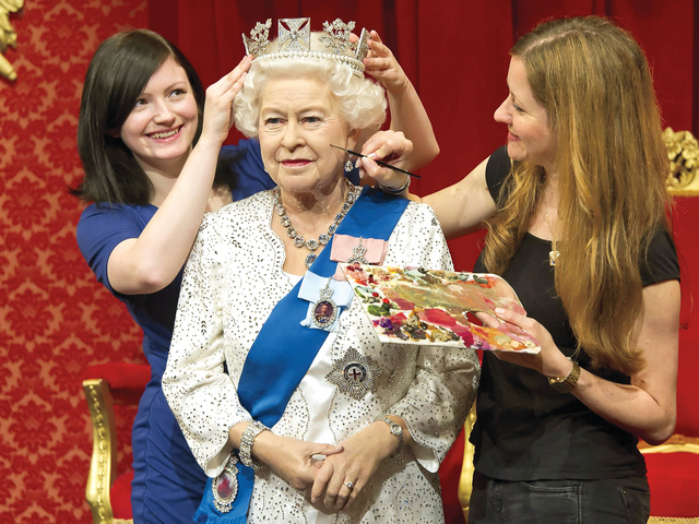 الملكة .. لمسات أخيرة "إيه. بي. أيه"لمسات أخيرة لتزيين ملكة بريطانيا اليزابيث الثانية أول من أمس، مع تصفيف الشعر ووضع أصباغ الماكياج على وجهها . فيما يعمل المتحف البريطاني في الوقت نفسه على صنع تمثال للملكة مستوحى من صورتها الحالية.