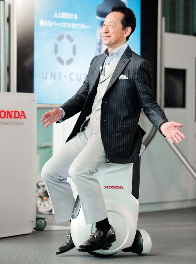روبوت (أ.ب)مامورو موهري رجل الفضاء السابق، يقدم شرحاً تفصيليا لتشغيل تكنولوجيا روبوت جديد تقدمه شركة هوندا في متحف طوكيو العملي أمس.