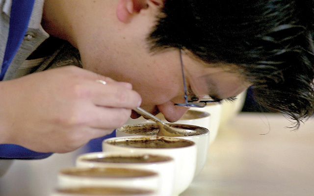 ذائقة (أ ب)يوشي كاتو يحني رأسه على فناجين القهوة النيكاراغوية، ليتذوقها، أمس في نيكاراغوا. فيما تشير دراسة أميركية إلى أن متناولي القهوة يعيشون أطول، حيث يرى الباحثون علاقة بين عدد فناجين القهوة المستهلكة وسنوات الحياة. نشرت ذلك الجريدة الإنجليزية للطب أمس.
