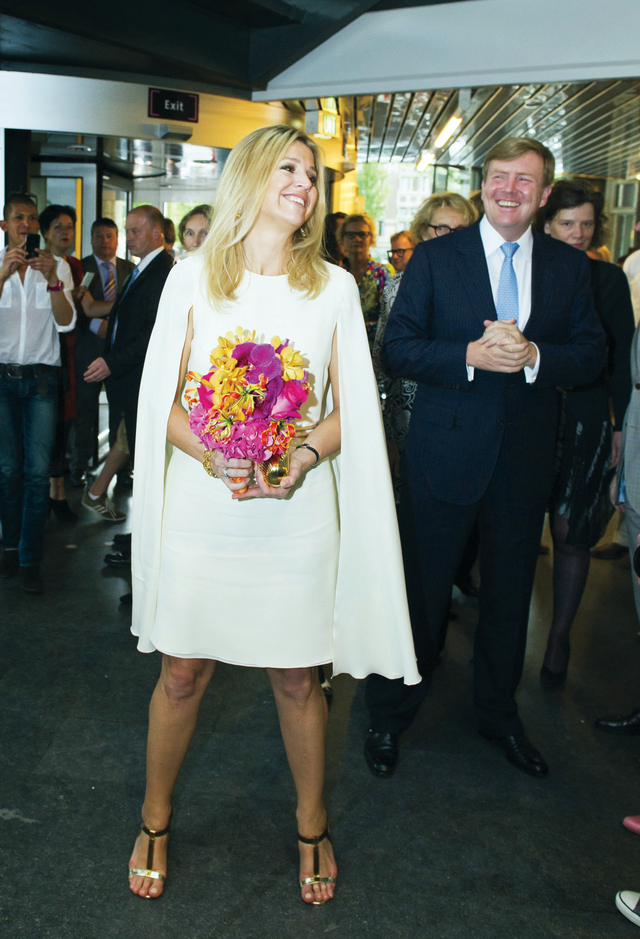 الأميرة ماكسيما، زوجة ولي عهد هولندا الأمير ويليام ألكسندر، الذي ظهر إلى جانبها، وقد بدأت فرحة تحمل باقة من الورد أثناء حضور الحفل الختامي للطبعة 65 لمهرجان هولندا الموسيقي في أمستردام، حيث تم عزف مقاطع من أوركسترا سيمفونية، أنعشتها فرق محلية ودولية.